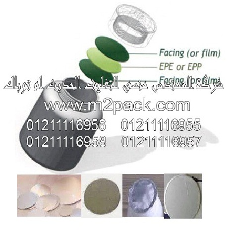 وأننا نري اللباد كمادة متبقية بالحشوة حيث يوجد الشمع في الطبقة الظاهرة بالرسم على أنها طبقة منتظمة – كما يوجد ايضا رقائق المونيوم وفيلم اللحام – وتشع خطوط القوة خلال الرقاقة ويتم الحس بشكل منتظم ويعمل ذلك على زيادة درجات الحرارة للرقاقة مما يؤدي إلى ذوبان الفيلم ولصقه بفوة الحاوية وبعد كسر اللحام فإن اللوحة أو الفوم تظل باقية داخل غطاء الزجاجة – الطبة وإن لحام رقائق الامونيوم تتم بسهولة مع مواد مختلفة ومتعددة نذكر منها على سبيل المثال مواد HDPE- LDPE- HIPS- PET- PVC والزجاج للحاويات والمرطبانات والانابيب والتي تقطع حسب الأبعاد المطلوبة – في صورة دائرية أو بيضاوية أو في صورة مستطيل أو مربع أو غيرها – وأن اللحام مع أغطية متعددة أو رقائق متعددة يمكن أن يكون قوي وثابت مع الحاوية وهذه الرقاقة الملحومة يمكن أن يتم طباعتها أو تجسيدها من أجل تغليف مناسب أكثر وسهولة في العمل للمستخدم النهائي ولمزيد من الترويج للمنتج وتحسين مظهره الخارجي