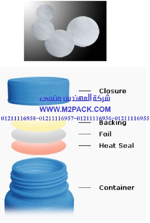 وصفا محتصرا حول غطاء الومنيوم فويل يلحم علي فوهة العبوات البلاستيكية بالاندكشن سيل لطبات تيريفثاليت البولي إثيلين لبرشمة فوهات الاوعية بالحرار التى نقدمها نحن شركة المهندس منسي للصناعات الهندسيه و توريد جميع مستلزمات التغليف الحديث –  ام تو باك