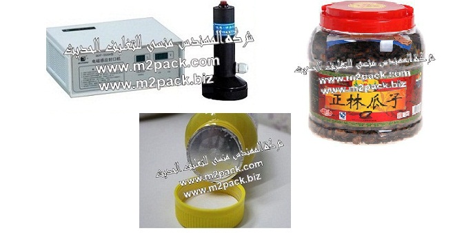 مكن لحام طبات الالمونيوم فويل علي فوهة برطمنات اللب السوري التي تم تصنيعها في مصانع المهندس منسي لماكينات التعبئة والتغليف والمواد الخام الخاصة بعملية التعبئة والتغليف
